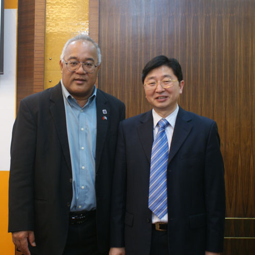 董事長和密克羅尼西亞外交部長 洛林?羅伯特合影