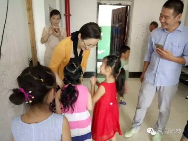 當翁總裁和陳書記來到暑期活動室,小朋友們正在興致勃勃地看動畫片。黨員干部的到來引起了小朋友們的注意,看到翁總裁和陳書記一行的到來,小朋友們很是開心。