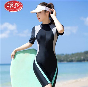 浪莎LangSha速干泳衣女新品專業(yè)學(xué)游泳保守泳衣女學(xué)生連體大碼胖mm200斤遮肚顯瘦運(yùn)動款泳裝 灰綠 4XL