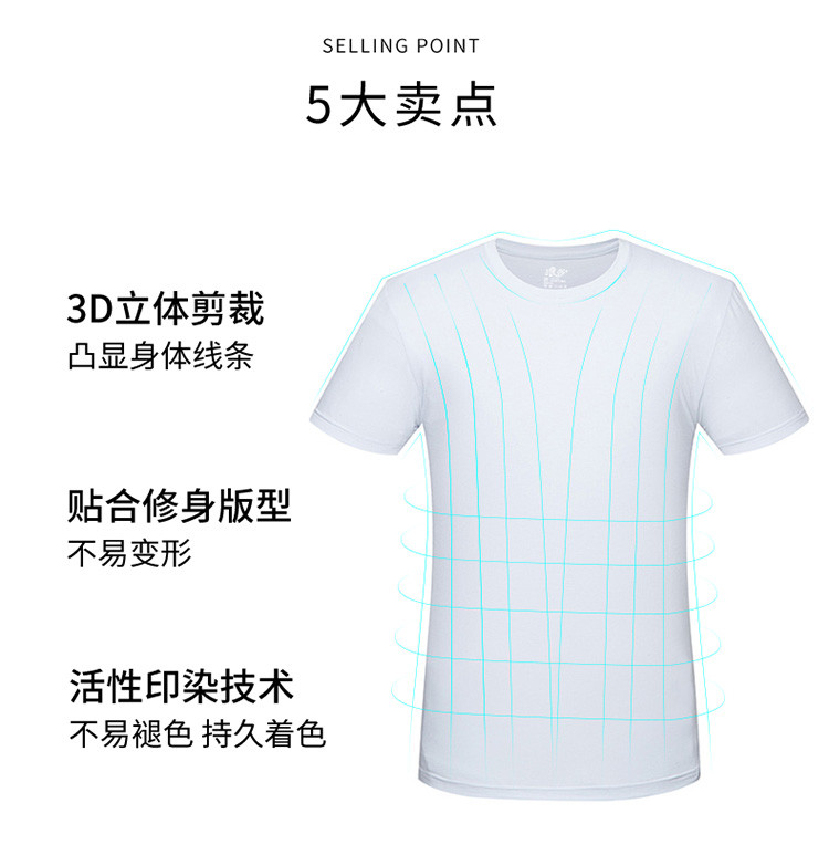 2件浪莎透氣春夏簡約男士彈力棉圓領運動T恤領休閑短袖
