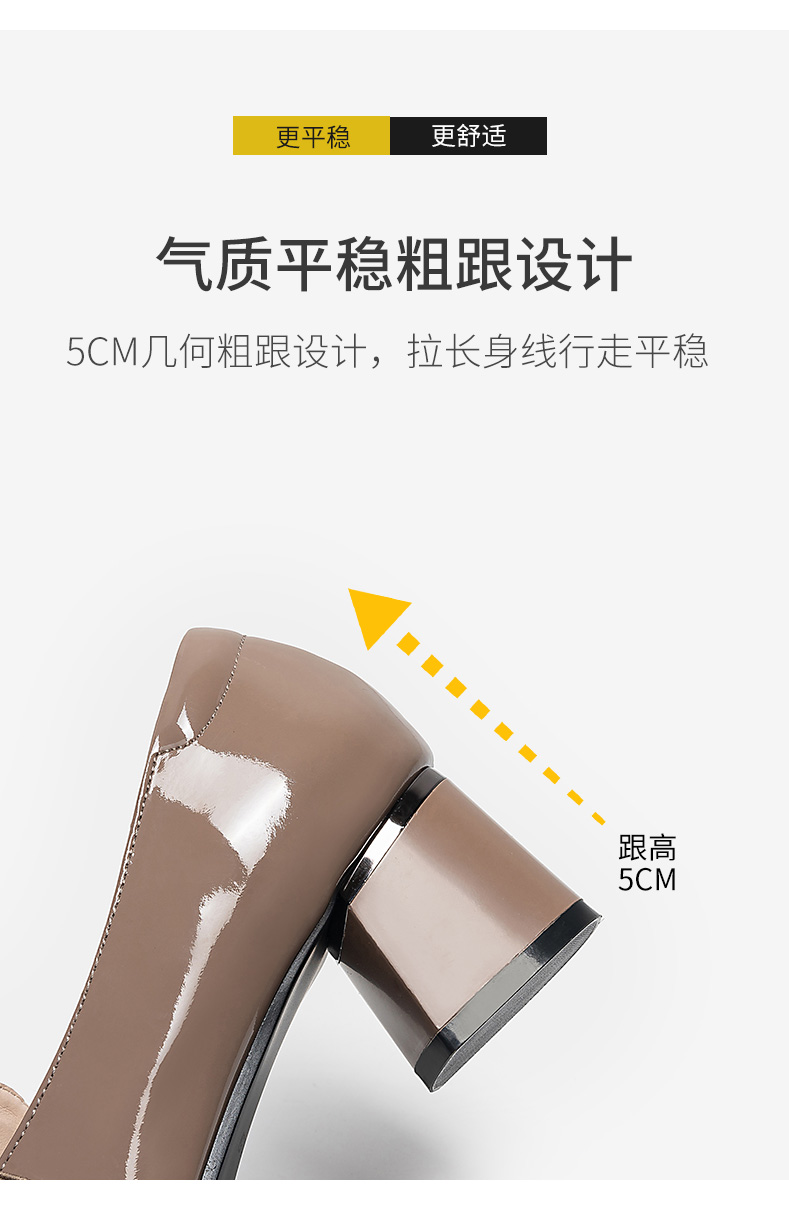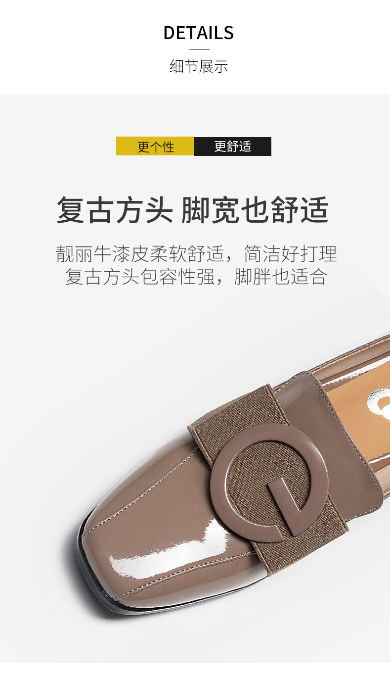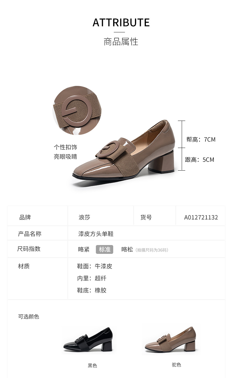浪莎粗跟單鞋女2021早春女鞋一腳蹬小皮鞋中跟方頭深口真皮樂福鞋