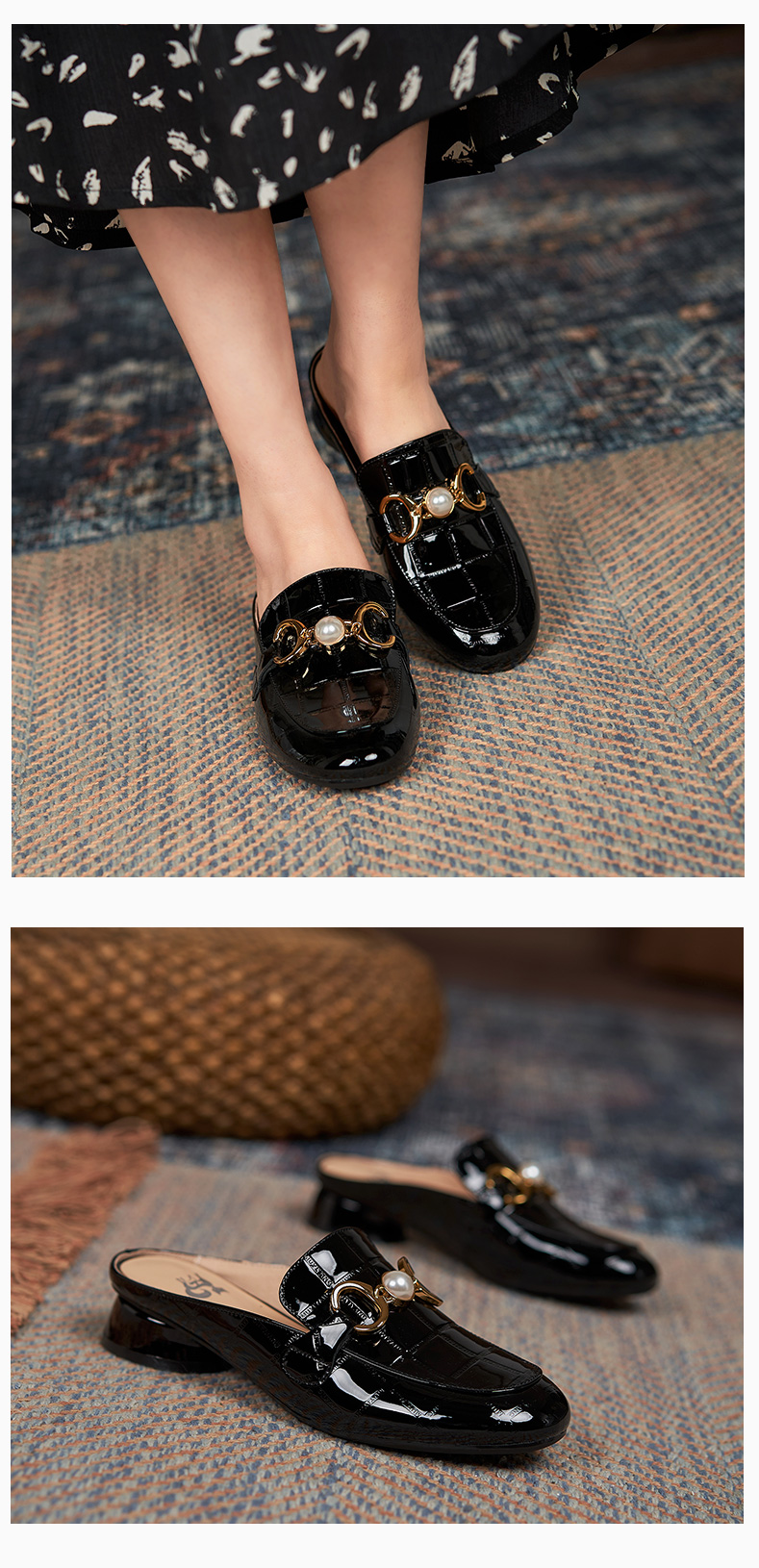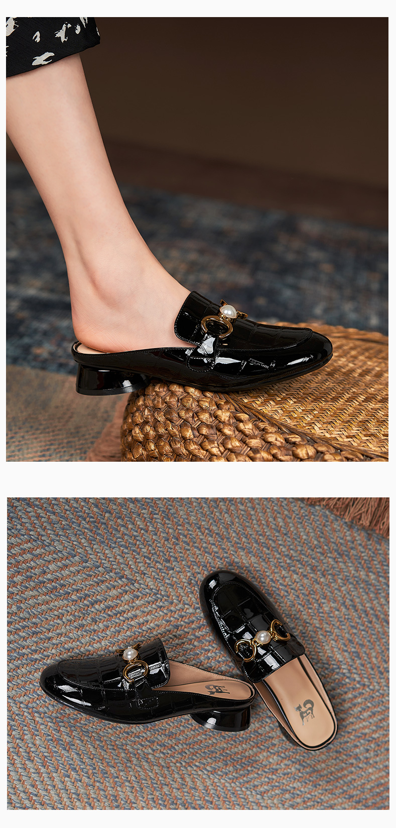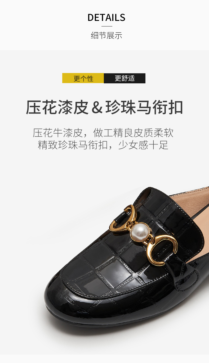 包頭半拖鞋女2021年新款夏季厚底外穿中跟懶人穆勒鞋時尚漆皮涼拖