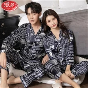 浪莎春夏季新款情侶睡衣韓版長袖仿真絲時尚開衫家居服冰絲套裝