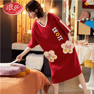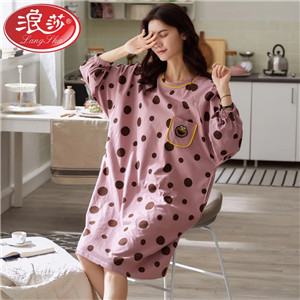 浪莎秋季純棉睡裙韓版可愛清新甜美寬松時尚睡裙女舒適長袖可外穿