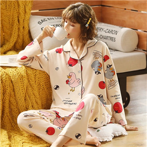 浪莎純棉睡衣女春秋款長袖開衫可愛少女學生全棉家居服兩件套裝