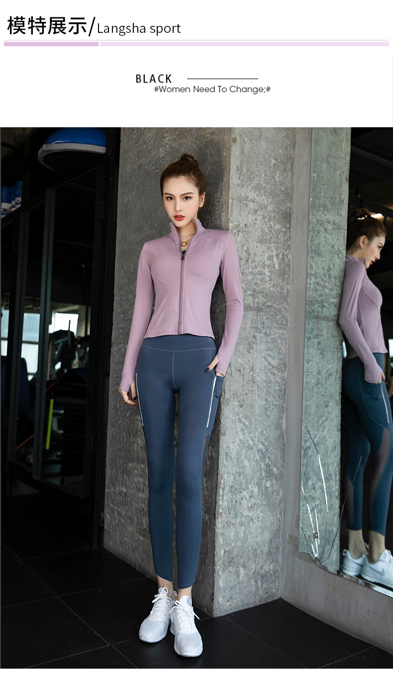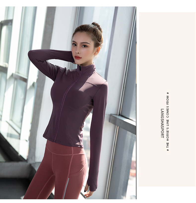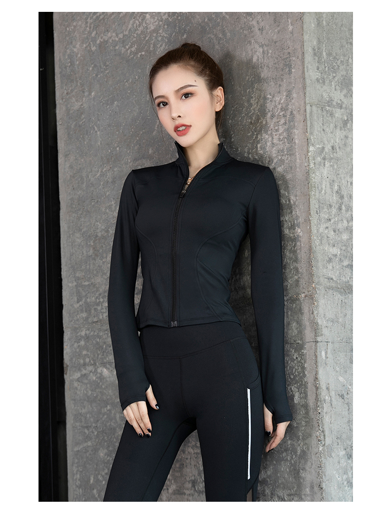 浪莎健身衣女緊身跑步速干拉鏈秋冬戶外立領(lǐng)黑色瑜伽長袖運(yùn)動(dòng)外套