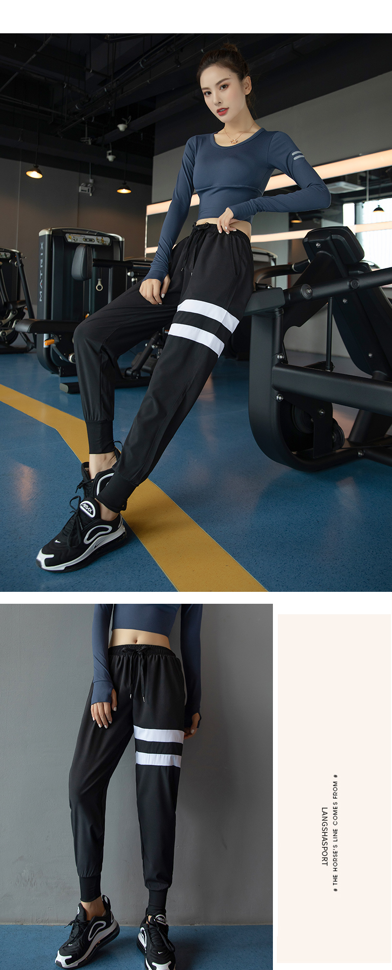 浪莎運動褲女寬松束腳收口跑步瑜伽褲春夏薄款休閑速干高腰健身褲