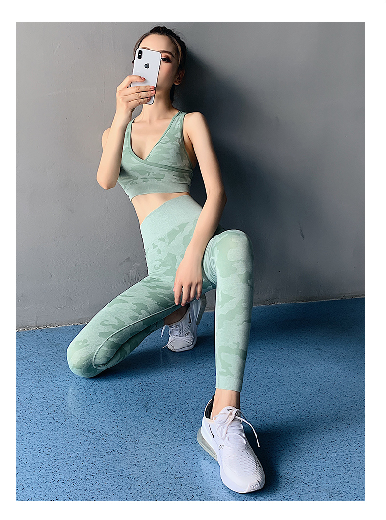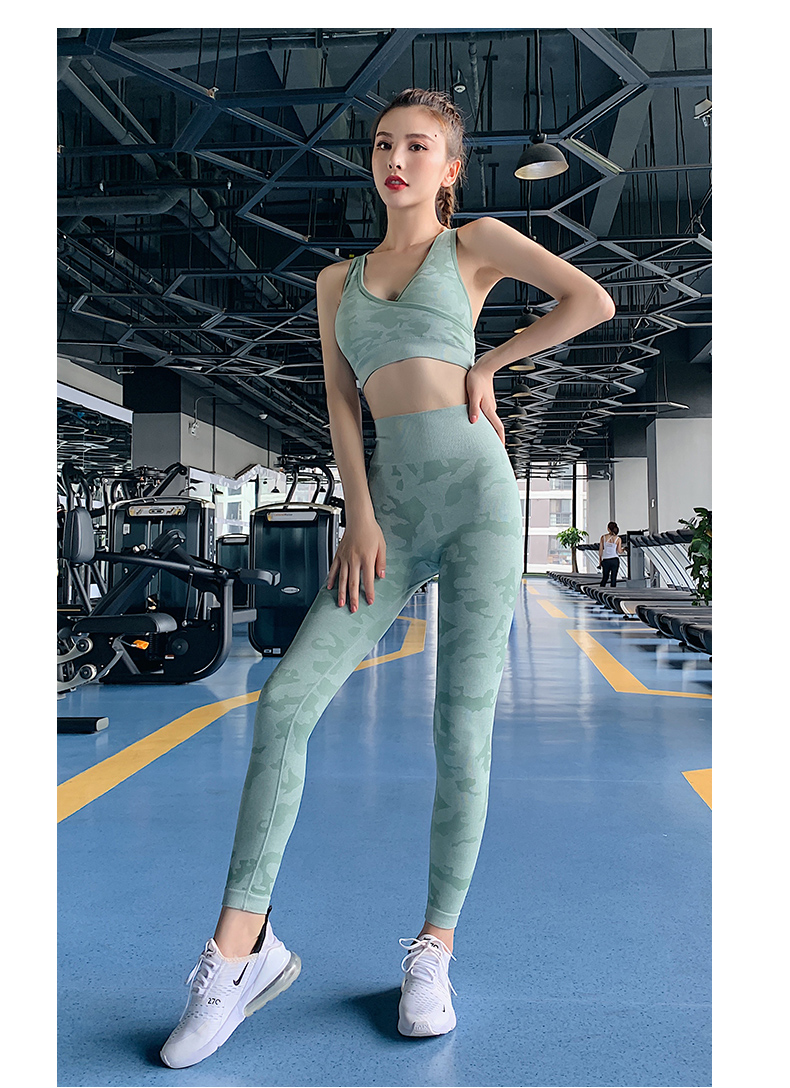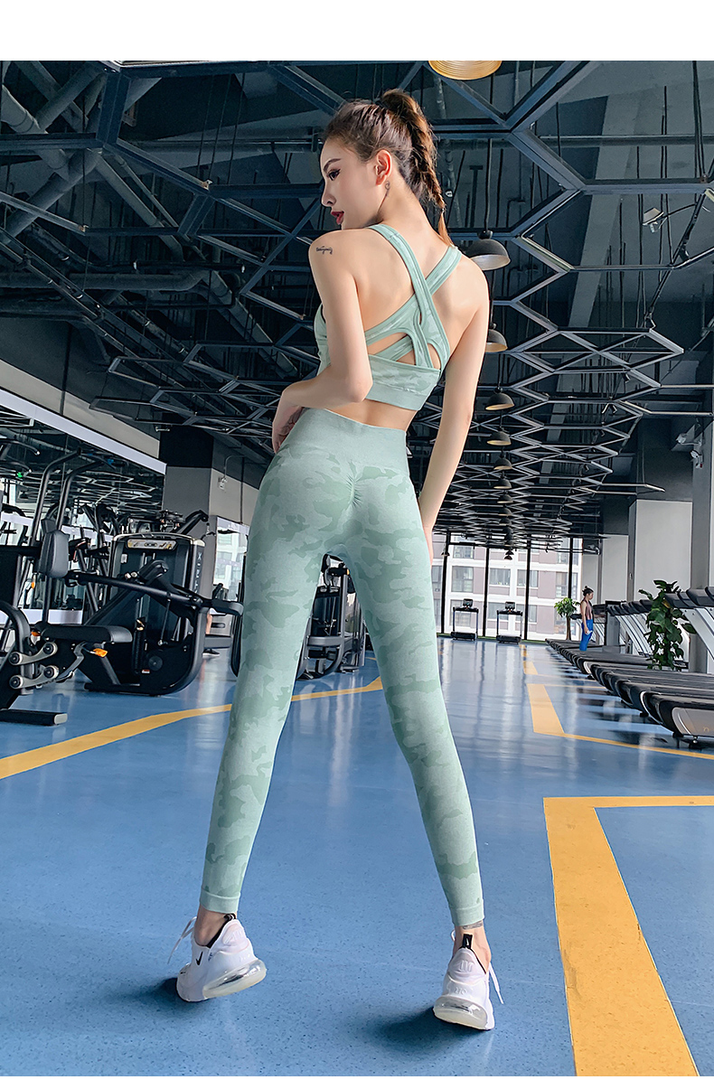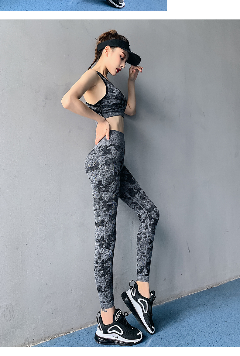 浪莎高腰健身褲女彈力緊身套裝提臀迷彩速干跑步運(yùn)動(dòng)收腹瑜伽褲