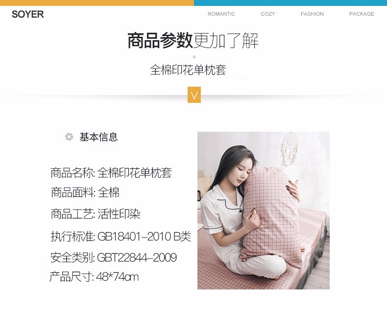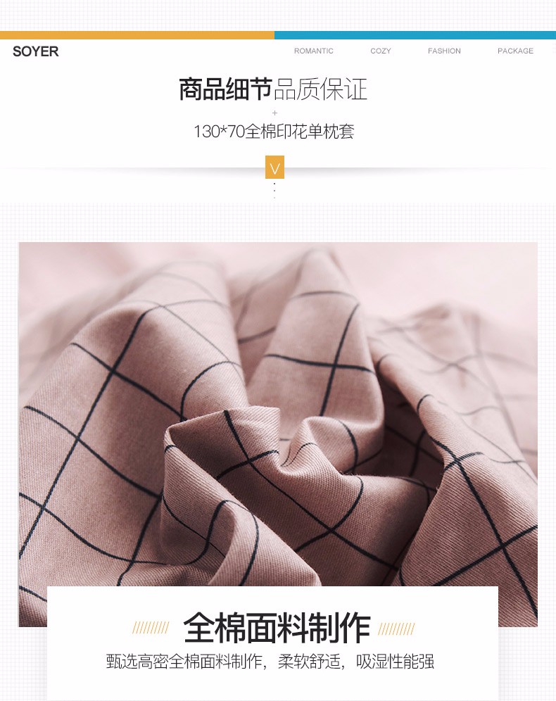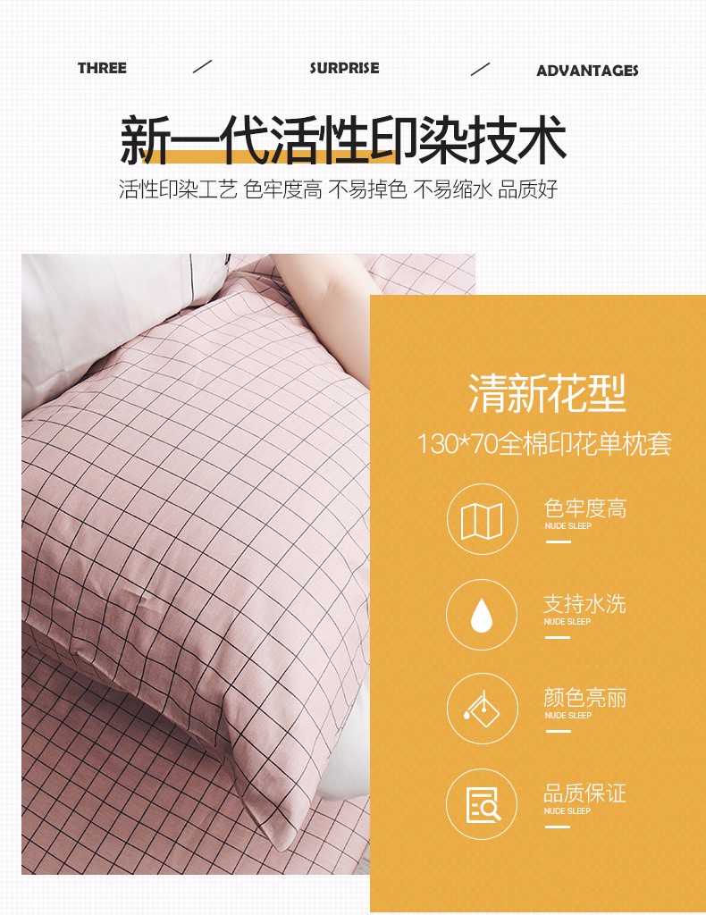 浪莎全棉枕套一對(duì)裝純棉印花枕頭套單人學(xué)生宿舍枕芯套48x74cm