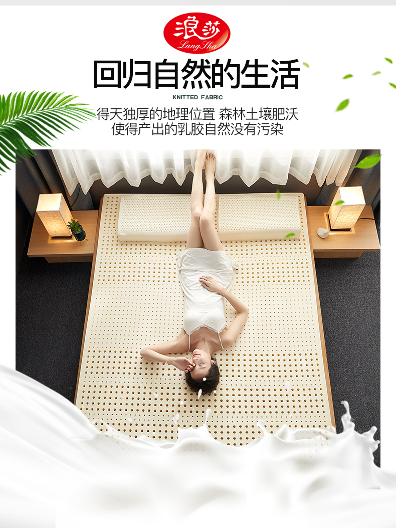 浪莎乳膠床墊泰國天然橡膠1.8m床純10cm席夢思兒童1.5米5cm進口