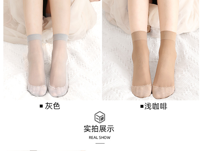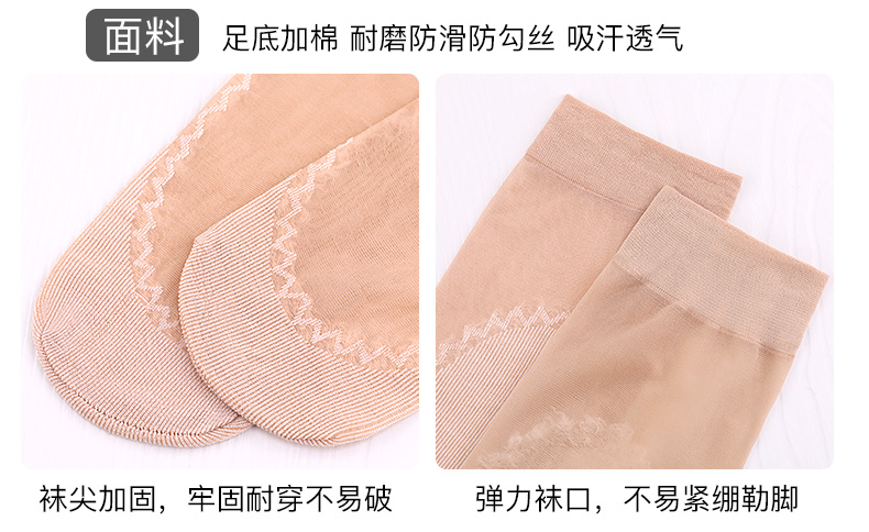 浪莎絲襪女薄款春秋水晶絲短襪耐磨防勾絲夏季黑肉色棉底襪子中筒