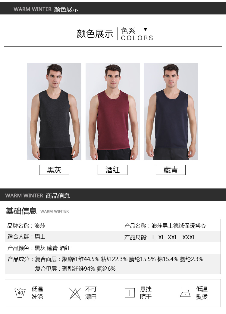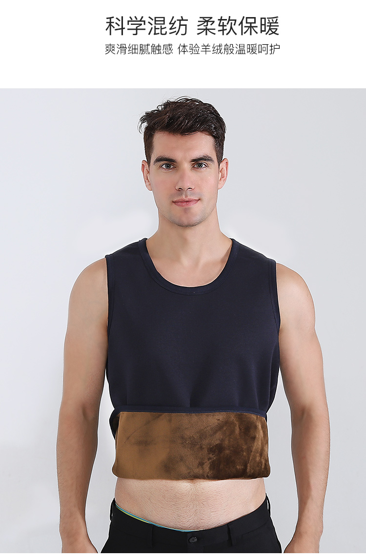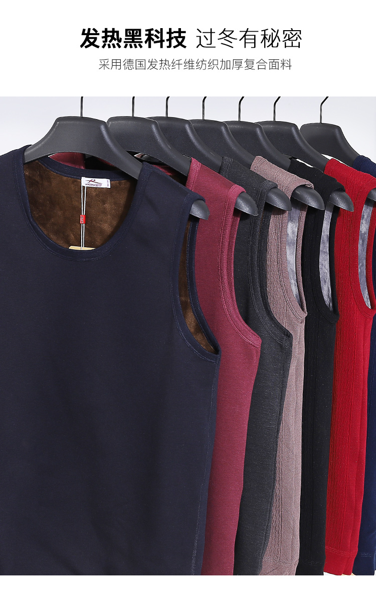 浪莎自發(fā)熱德絨保暖背心男士加厚加絨冬季上秋衣單件打底保暖內衣